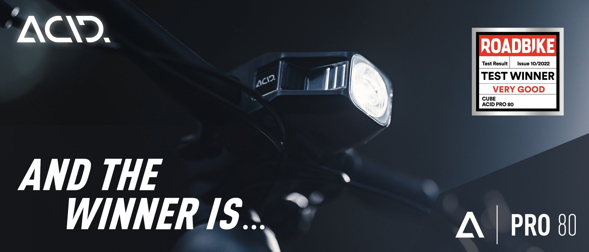 set includes: ACID front light PRO 80 and ACID rear light PRO, StVZO (German road traffic regulations) approved, 80 lux, includes Micro-USB charging cable, protection class IPX5
