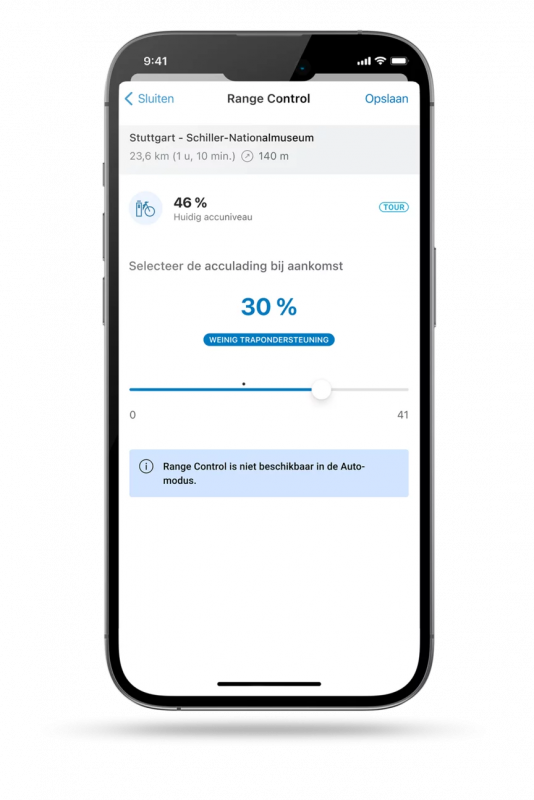 A useful feature is Range Control, which shows you exactly how much battery you have left when you arrive at your destination. This way, you don't have to worry about your range on longer trips.