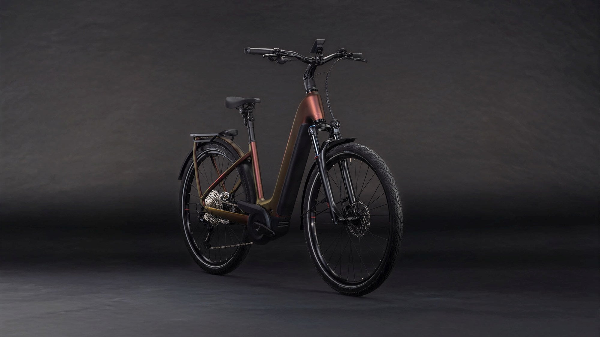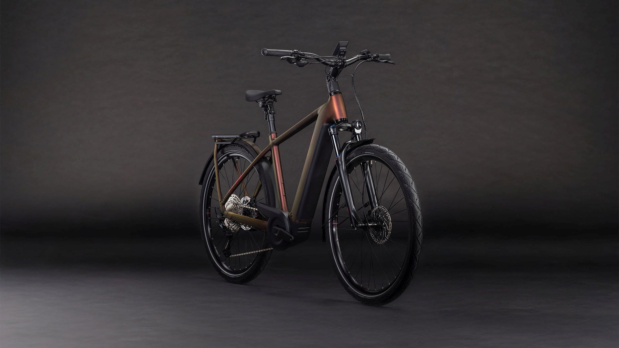 The Kathmandu Hybrid Pro by CUBE is all about the freedom of two-wheeled exploration, with a handy Bosch power boost. You can't miss the elegant lines of the Integrated Carrier 3.0, which provides a sturdy base for carrying whatever you need. The Bosch CX drive and 800Wh PowerTube battery, meanwhile, are so neatly incorporated into the frame's design, you'll barely notice them until you start turning the pedals. At which point, the wide range and precise shifting of Shimano's XT 1x12 gears are bound to come in handy, as is the smooth strength of the 4-piston Shimano hydraulic disc brakes when you need to slow down. With a full complement of included accessories including a super-comfortable parallelogram seatpost, the only remaining question is where you'll be headed next...
